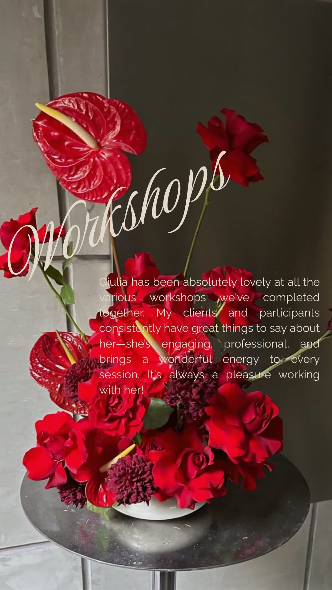 Let me host a one of a kind floral workshop for you and your closest friends! Workshops are a high energy, creative and fun way to bring people together and to learn a new skill!