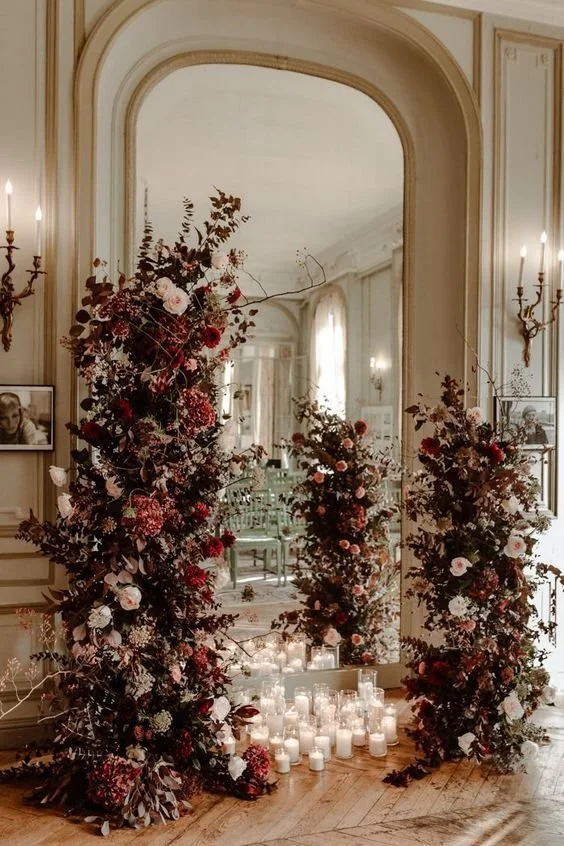 Winter’s shorter days make indoor ceremonies the perfect opportunity for florals to take center stage. Grounded floral meadows, asymmetrical arches, and immersive backdrops transform a space instantly.