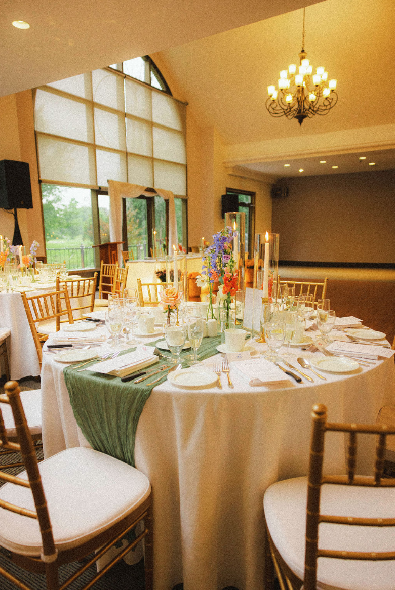 We styled the tables with a curated collection of bud vases in varying heights and shapes, creating texture and movement across the room. Each arrangement featured soft pastel florals that reflected the summer palette of the day.
